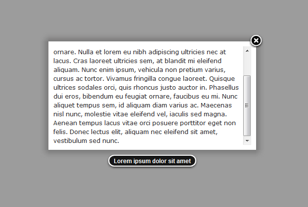 <a id="open_conditions" href="#conditions" title="Lorem ipsum dolor sit amet">Ver condiciones</a> <div style="display: none;"> <div id="conditions" style="width:400px;height:200px;overflow:auto;"> Lorem ipsum dolor sit amet, consectetur adipiscing elit. Etiam quis mi eu elit tempor facilisis id et neque. Nulla sit amet sem sapien. Vestibulum imperdiet porta ante ac ornare. Nulla et lorem eu nibh adipiscing ultricies nec at lacus. Cras laoreet ultricies sem, at blandit mi eleifend aliquam. Nunc enim ipsum, vehicula non pretium varius, cursus ac tortor. Vivamus fringilla congue laoreet. Quisque ultrices sodales orci, quis rhoncus justo auctor in. Phasellus dui eros, bibendum eu feugiat ornare, faucibus eu mi. Nunc aliquet tempus sem, id aliquam diam varius ac. Maecenas nisl nunc, molestie vitae eleifend vel, iaculis sed magna. Aenean tempus lacus vitae orci posuere porttitor eget non felis. Donec lectus elit, aliquam nec eleifend sit amet, vestibulum sed nunc. </div> </div>