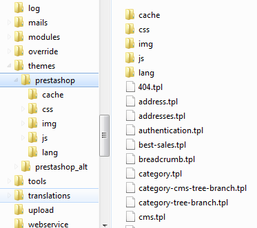 - Ubique el directorio /themes en su instalación de PrestaShop y cree una copia del directorio por defecto ../themes/prestashop/.